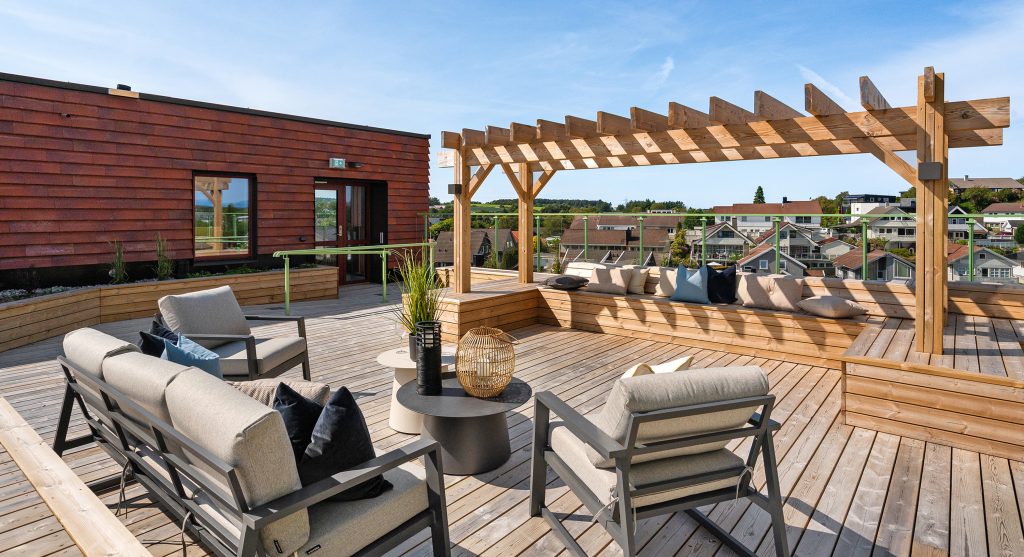 I Madla Vest legger vi til rette for at beboerne enkelt kan møtes og trives sammen. Dette gjør vi gjennom bo- og trivselskonseptet Heime, felles selskapslokale. gjesteleilighet, treningsrom, deleordninger, beboerarrangementer og mye mer.