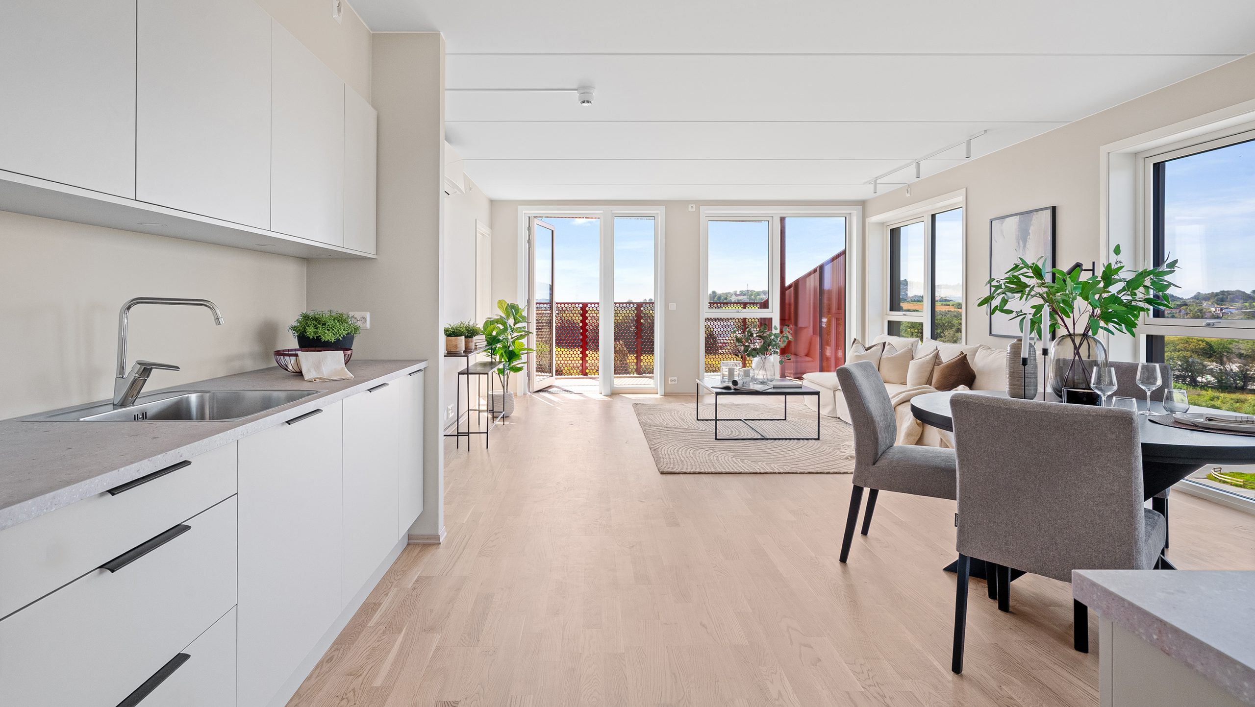 På Madla Vest har vi valgt en løsning for finansiering som vi kaller for «50/50/50» – 50 % prosent innskudd, 50 % felleslån og 50 år løpetid.