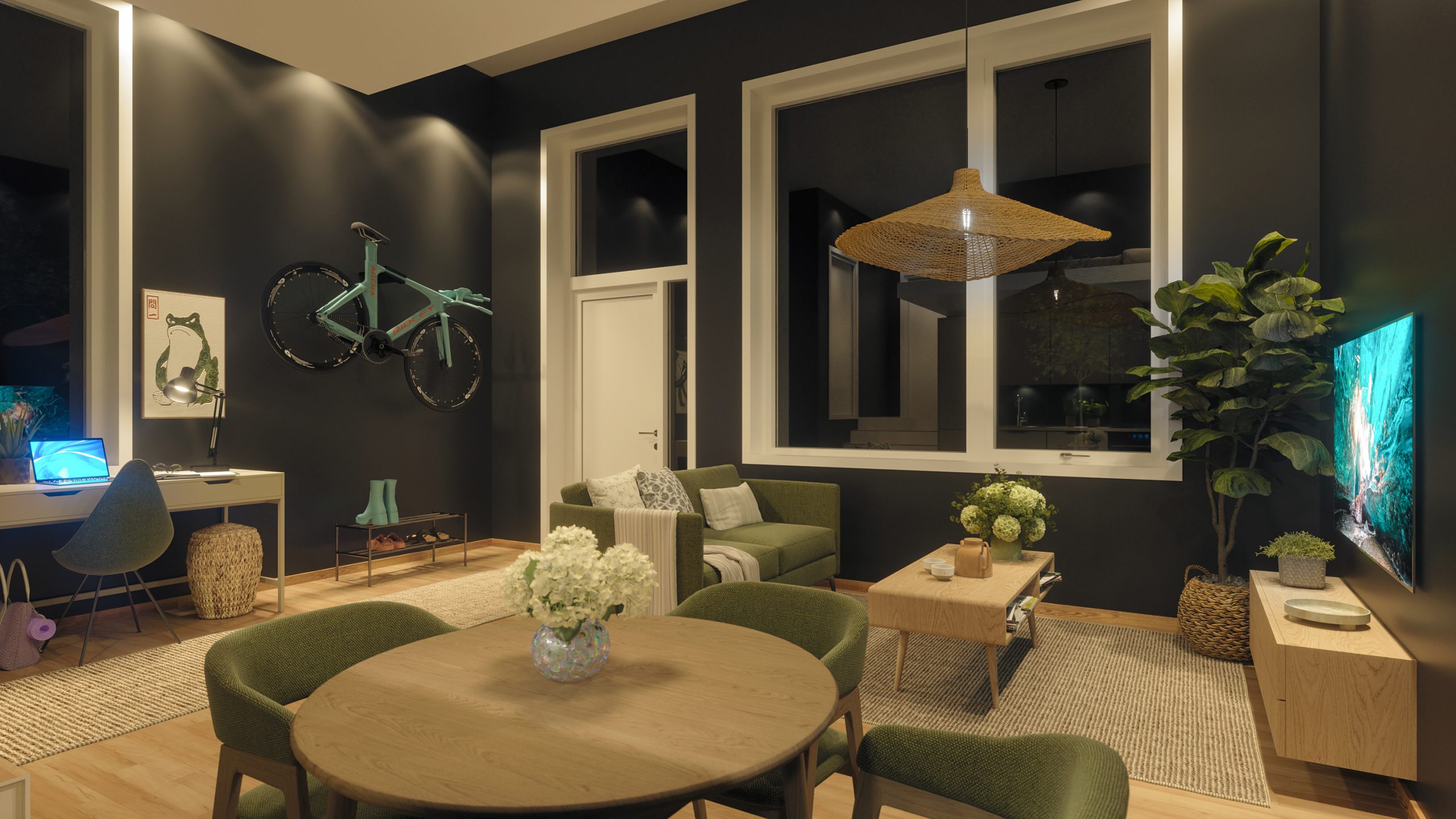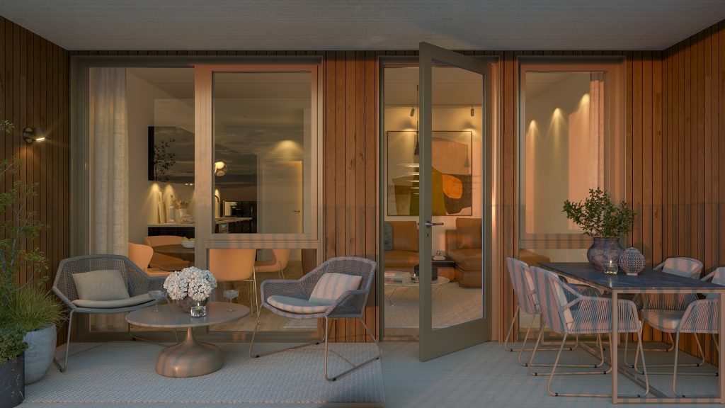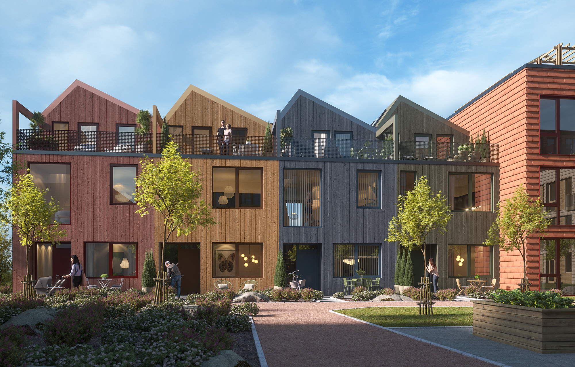 Fire moderne byhus med karakter, kvalitet og en spennende fargepalett. Boligene har gjennomtenkte planløsninger, god romfølelse og arkitektur som skiller seg ut. Store takterrasser og private balkonger gir uteplasser med himmelhøy verdi. Praktisk. Elegant. Og helt ditt.