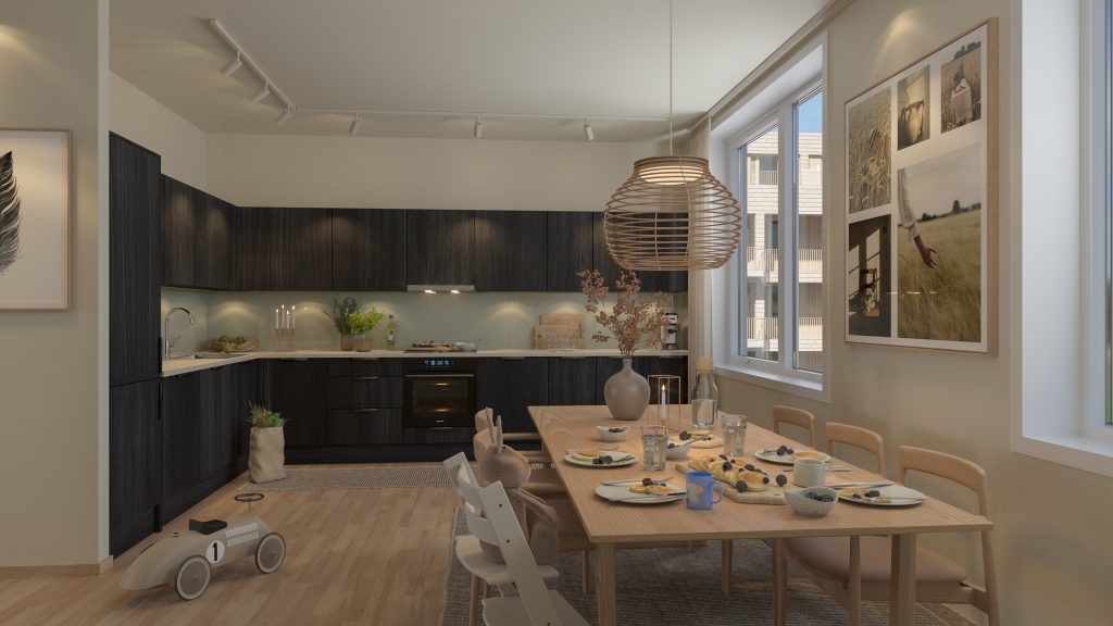 Med et variert utvalg av leiligheter i ulike størrelser er vi sikre på at du finner den perfekte boligen for deg! Alle leilighetene får solrike balkonger og store vindusflater som slipper inn lys og utsikt. Interiøret holder en god standard med blant annet enstavs eikeparkett, moderne kjøkken og flotte baderom.
